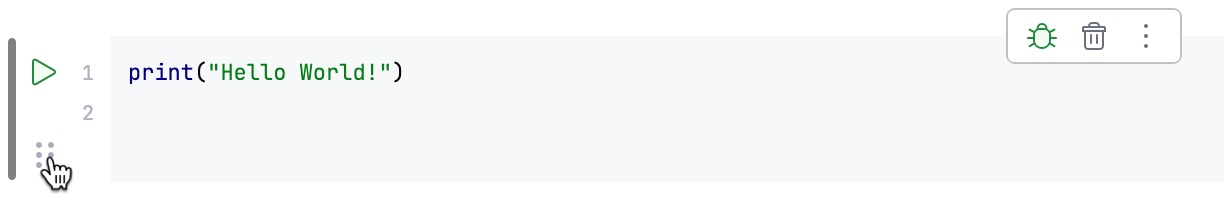 Click and hold the cell handle in the gutter next to the cell.