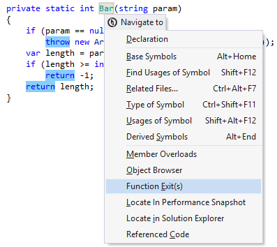 Note that by default dotPeek automatically highlights all function exits when you place the caret at one of them.