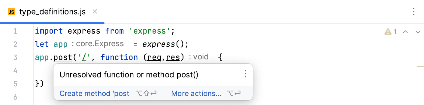 The example below shows a piece of code from an Express application where the post() function is not resolved: