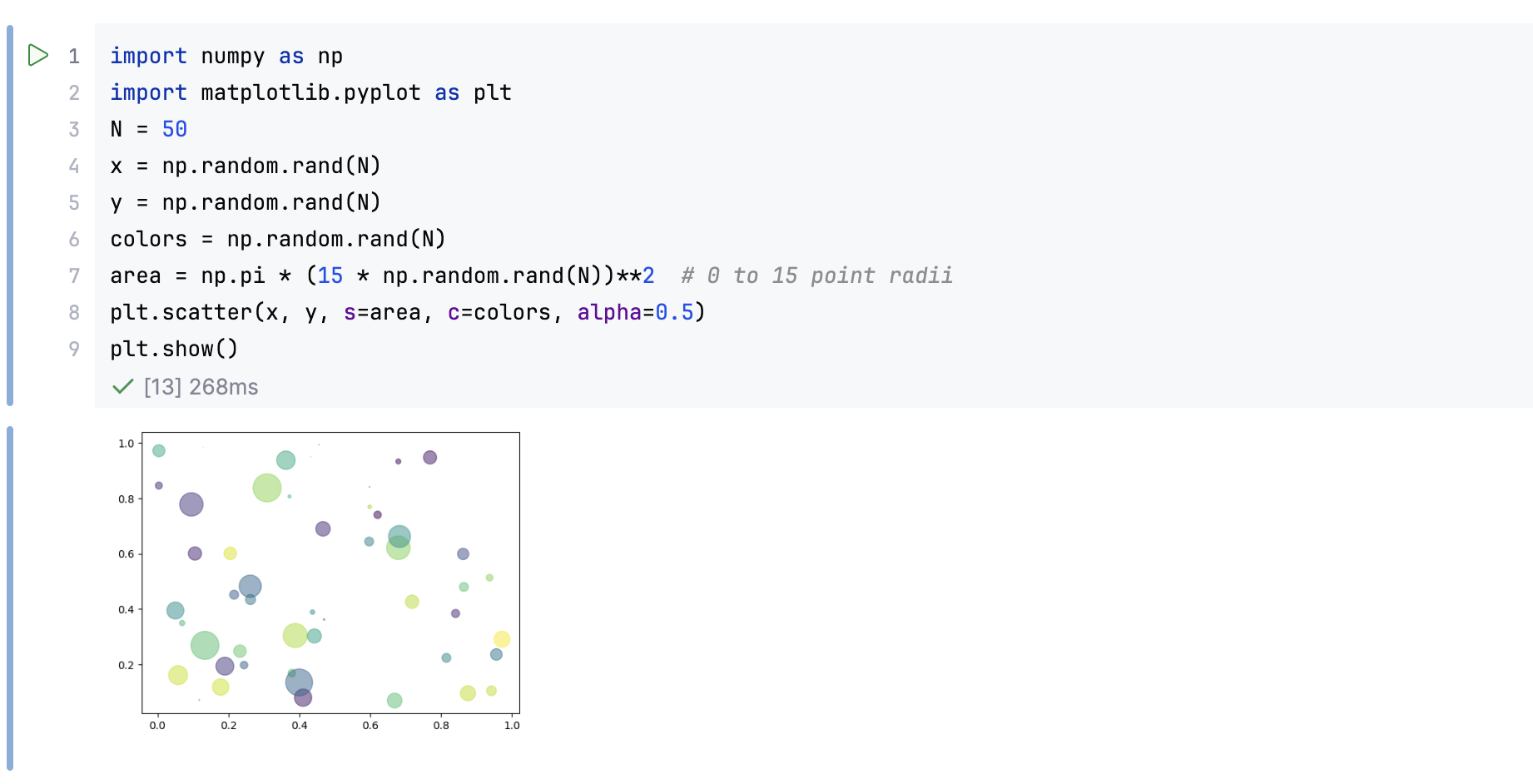 A cell contains a piece of either a code or Markdown text. When you run a code cell, you can view the cell output, which is the result of code execution: