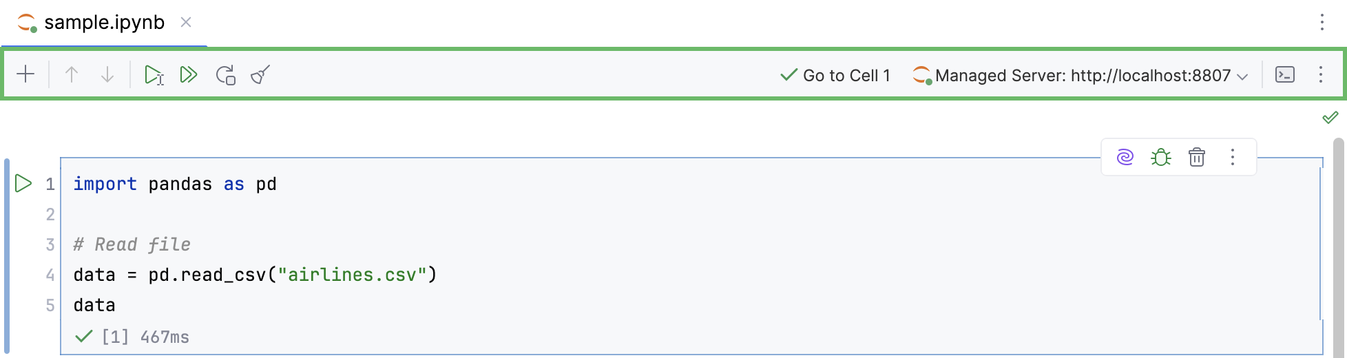 The Jupyter notebook toolbar provides quick access to all basic operations with notebooks.
