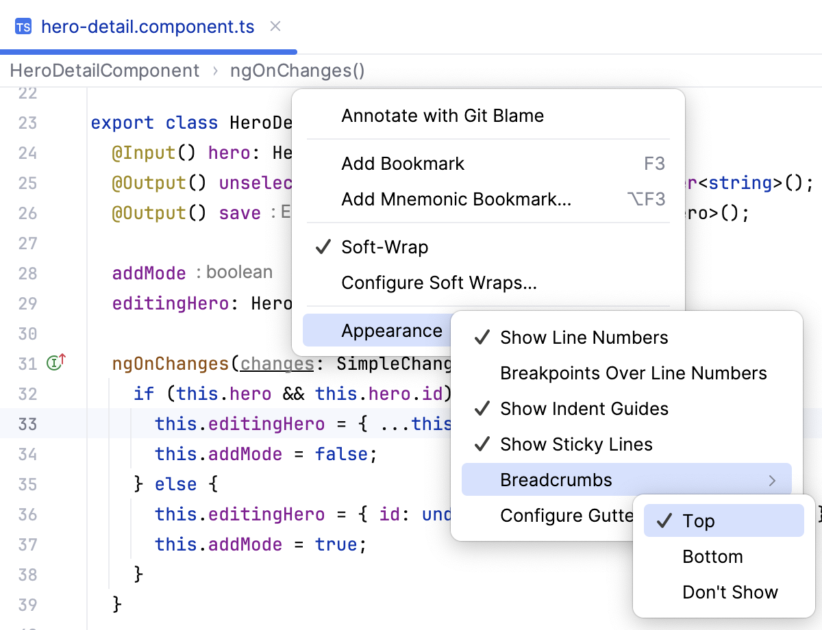 For the details on navigating between the editor and tool windows, as well as working with the editor tabs and breadcrumbs, refer to Editor basics.