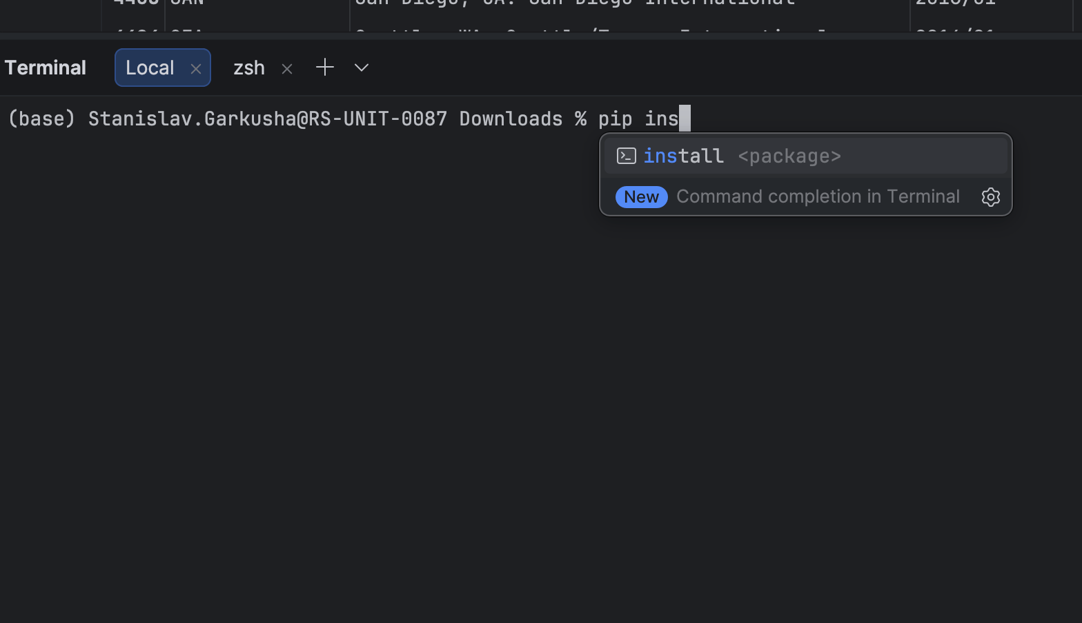 The integrated terminal now suggests commands and parameters as you type.