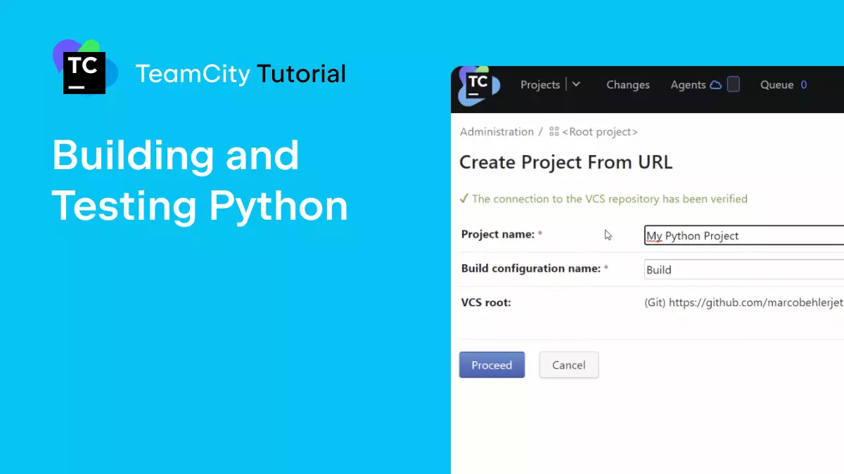 Wenn TeamCity erfolgreich eine Verbindung zu Ihrem Repository hergestellt hat, sehen Sie den folgenden Dialog:
