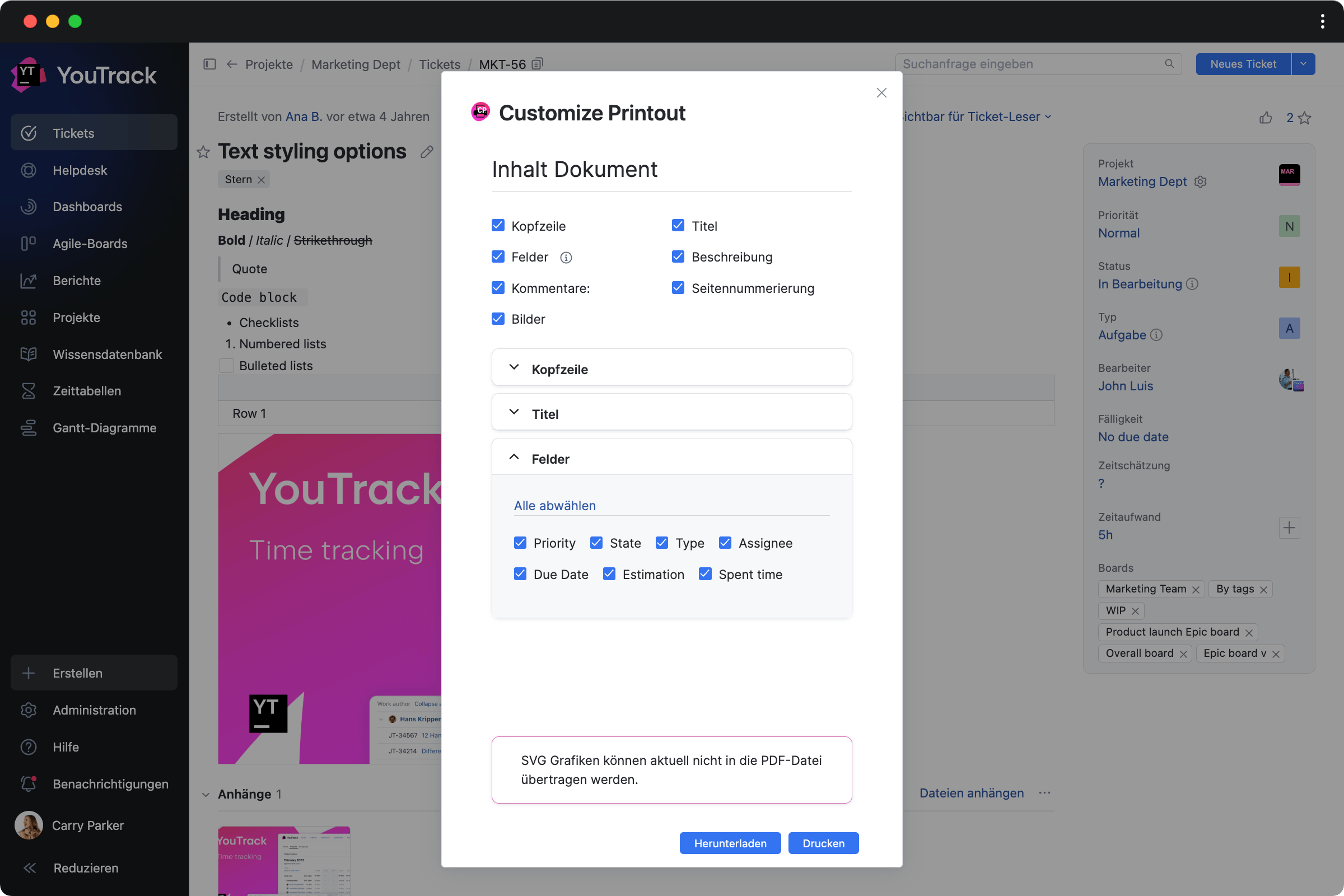 Verknüpfen Sie YouTrack-Aufgaben mit Kundenprofilen, Fällen und Dokumenten im LegiSpace-System.