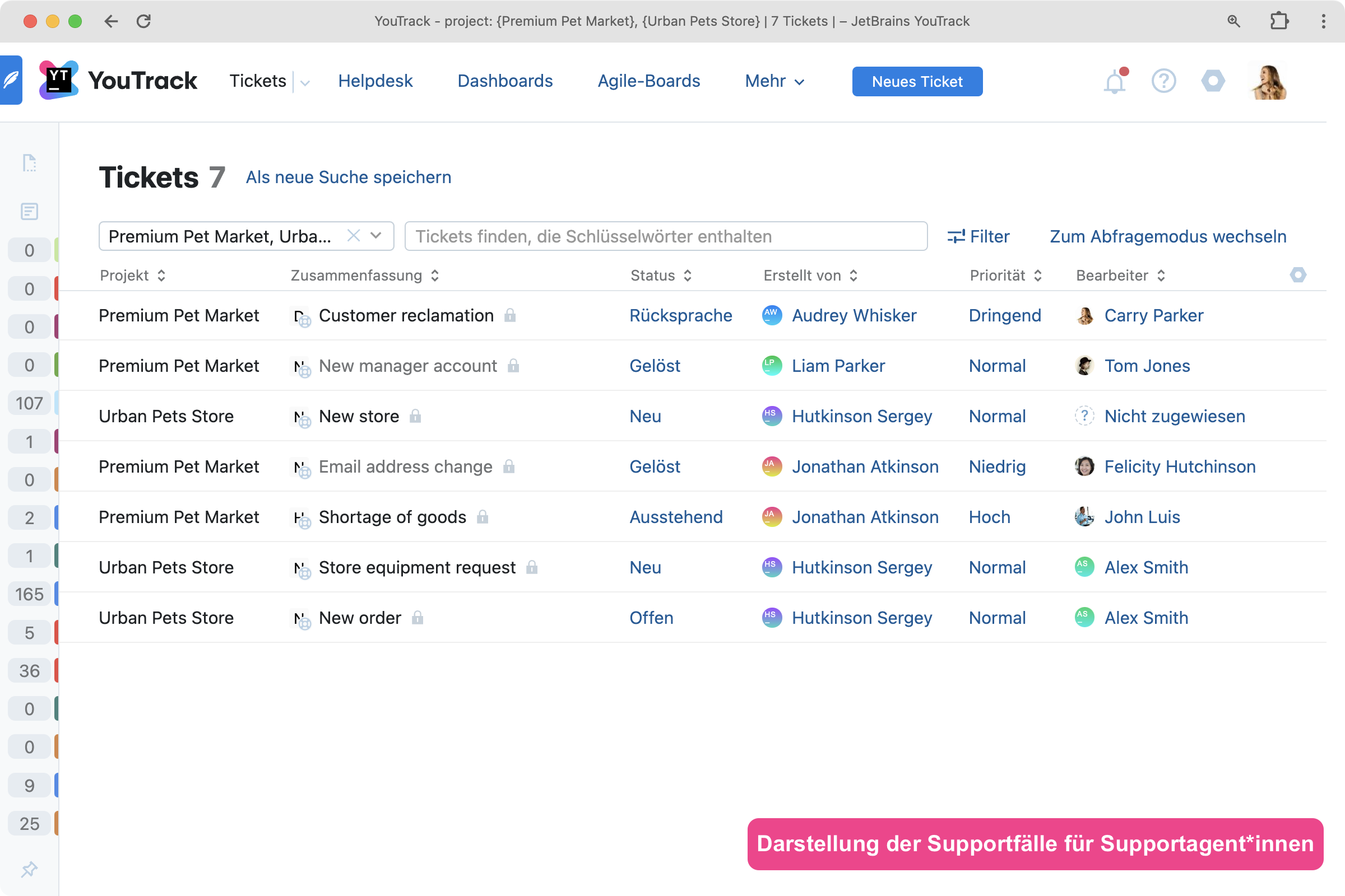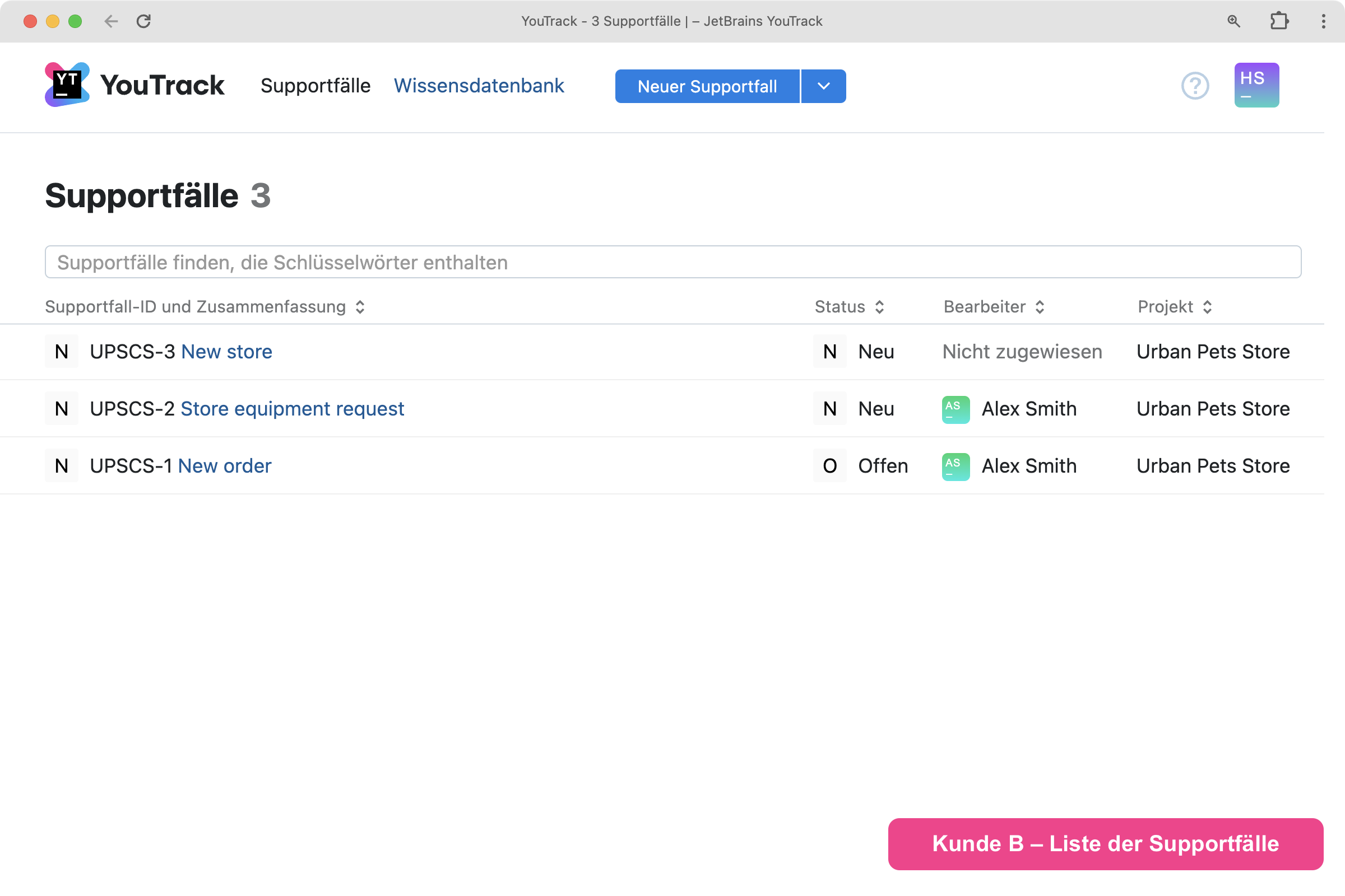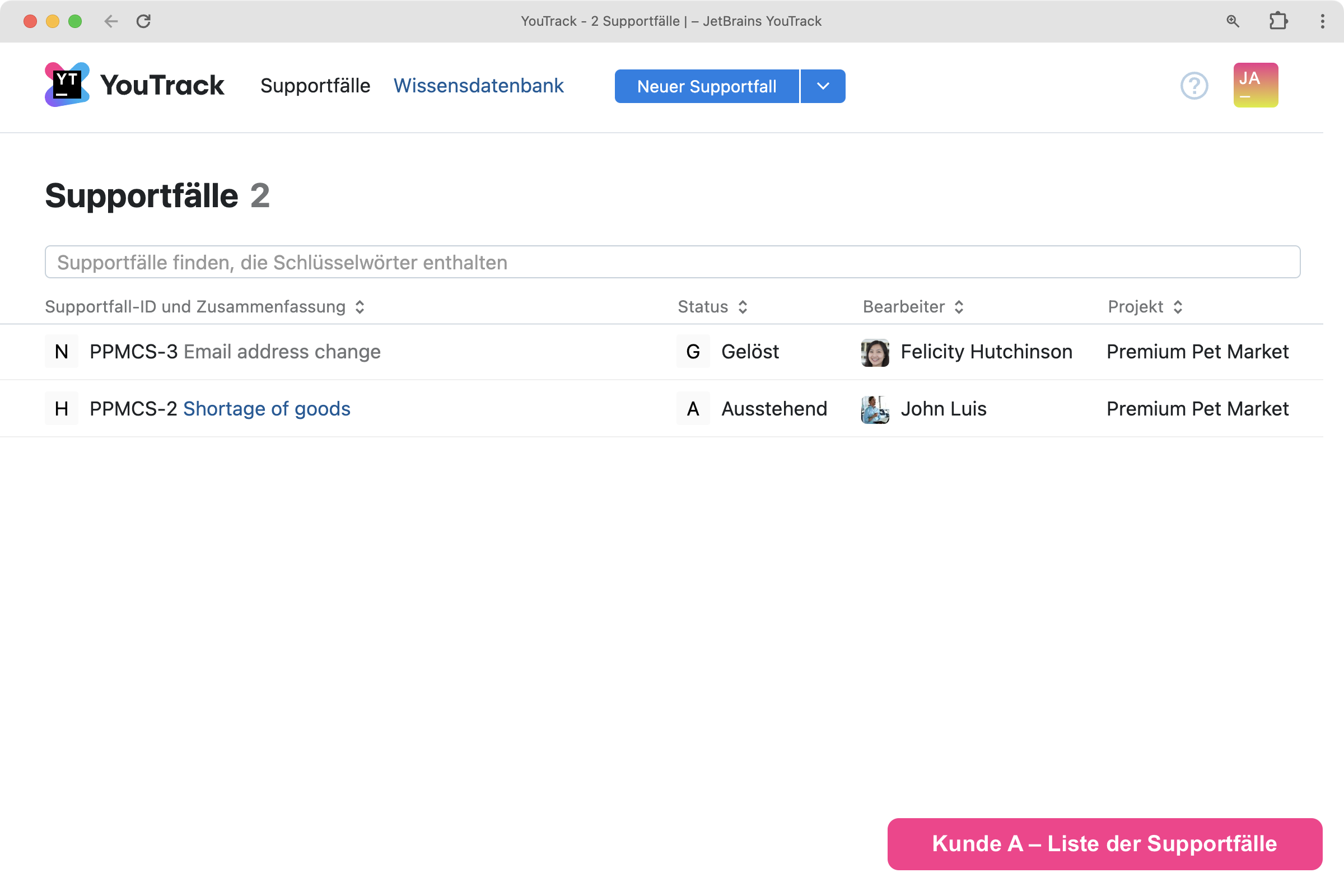 Sie haben jetzt bei jedem Helpdesk-Projekt die Möglichkeit, das Projekt so einzuschränken, dass es nur für einen bestimmten Melderkreis sichtbar ist. Dies bedeutet, dass Ihre Melder*innen aus einem Projekt keinen Zugriff auf Supportfälle, Onlineformulare für die Erstellung eines Supportfalls und Knowledge-Base-Artikel aus anderen Helpdesk-Projekten haben, wenn Sie diese auf eine andere Meldergruppe beschränkt haben. Diese Funktion wurde für Supportteams eingeführt, die innerhalb derselben YouTrack-Instanz mehrere Helpdesk-Projekte verwenden, zum Beispiel für den Support für verschiedene Produkte oder Kundenunternehmen.