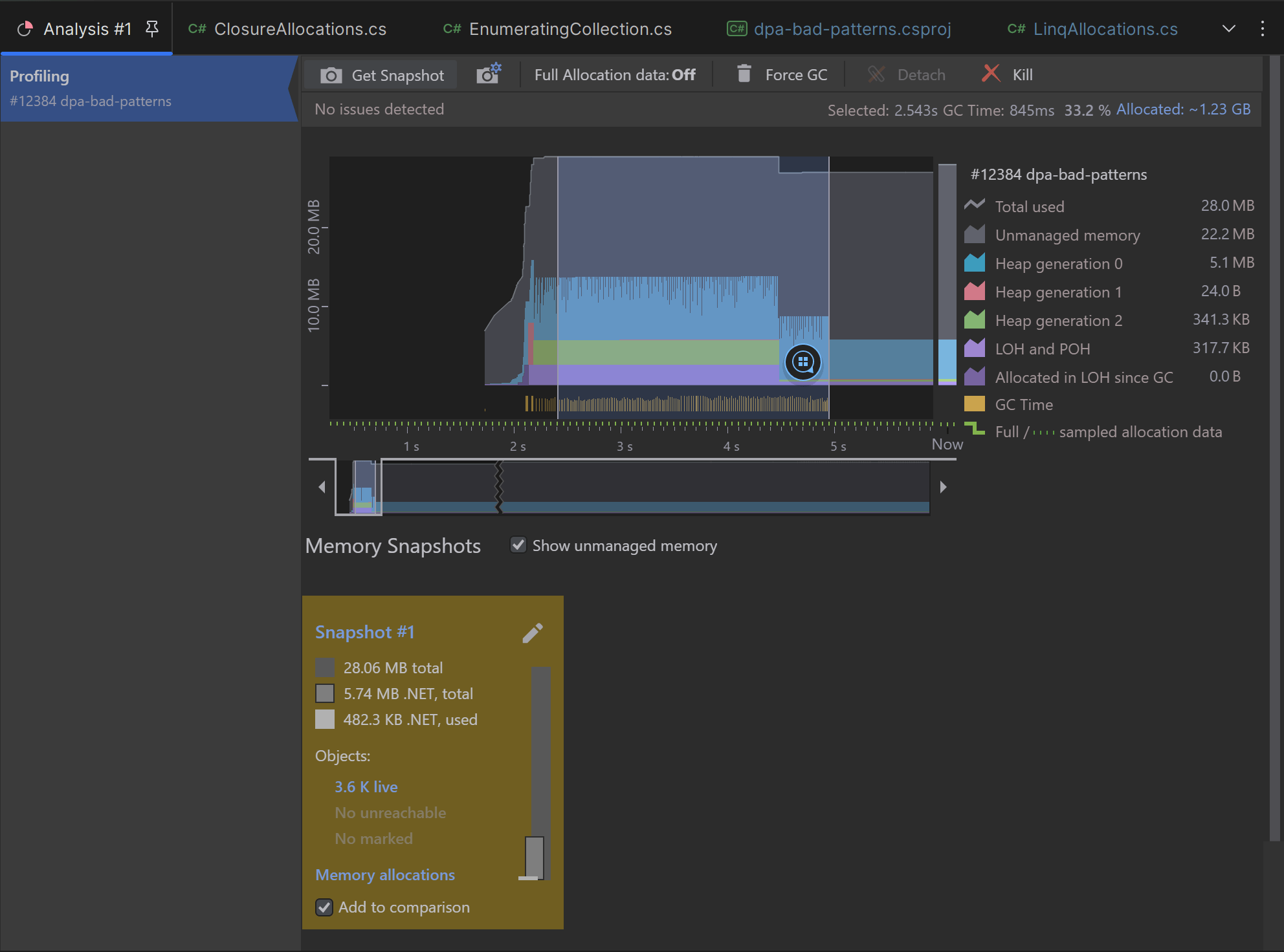 Before 2023.2, you could only use dotMemory in Rider for memory allocation analysis. In 2023.2, you can collect memory snapshots and analyze them in Rider, just like in the standalone version of dotMemory.