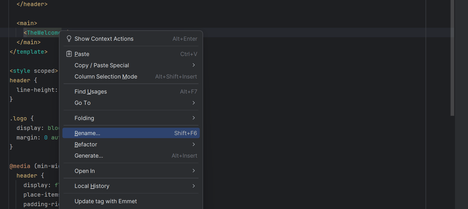 Se ha incorporado la compatibilidad inicial con el modo Vapor (disponible en Vue 3.6), y WebStorm ahora reconoce la sintaxis createVaporApp, <script vapor>, así como las directivas registradas mediante complementos. El IDE ahora también ofrece total compatibilidad con el uso de varios bloques <script> en todos los tipos de componentes.