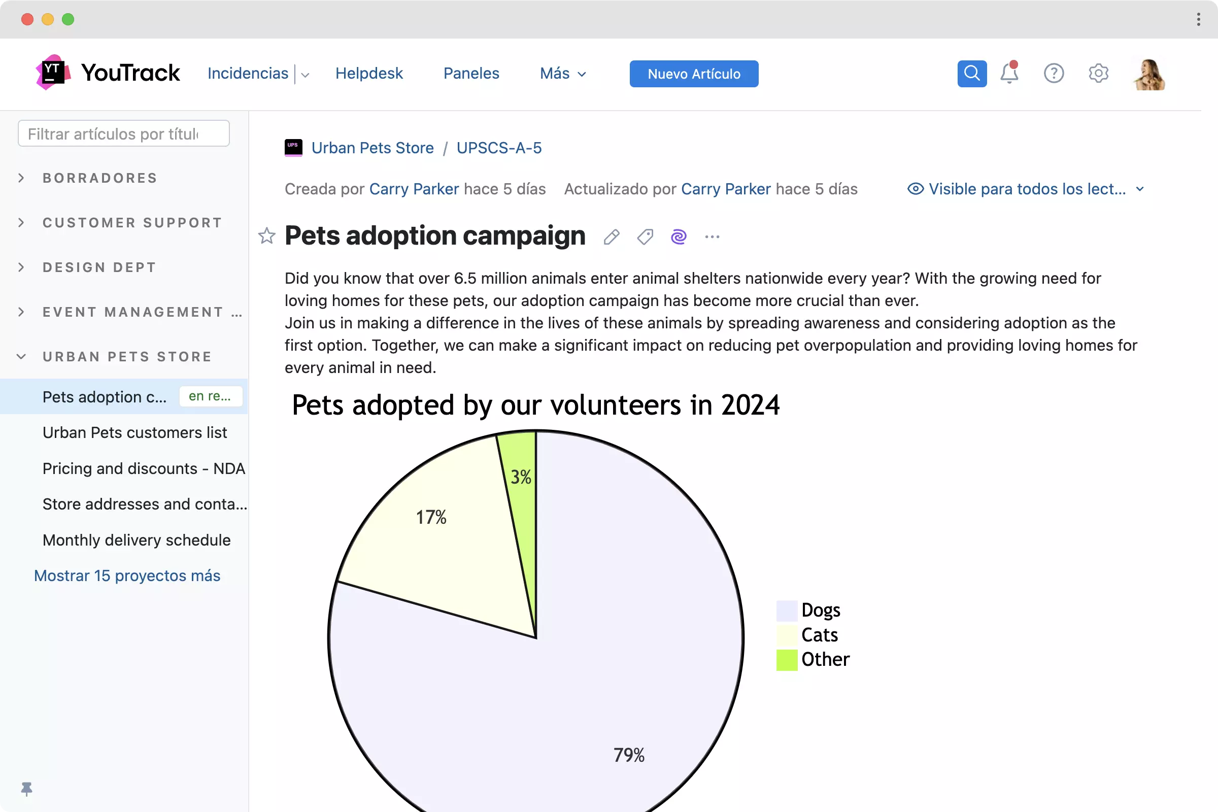 Las versiones de YouTrack tanto de Cloud como de Server ahora son más rápidas. Ahora, YouTrack puede manejar más incidencias, artículos y archivos con menos núcleos de CPU y menos memoria RAM. Las páginas principales, como las páginas de incidencias o las listas de incidencias, entre muchas otras, ahora se cargan más rápidamente con menos tráfico y menos tiempo de respuesta del servidor, en especial para instalaciones de YouTrack más grandes con miles de usuarios.