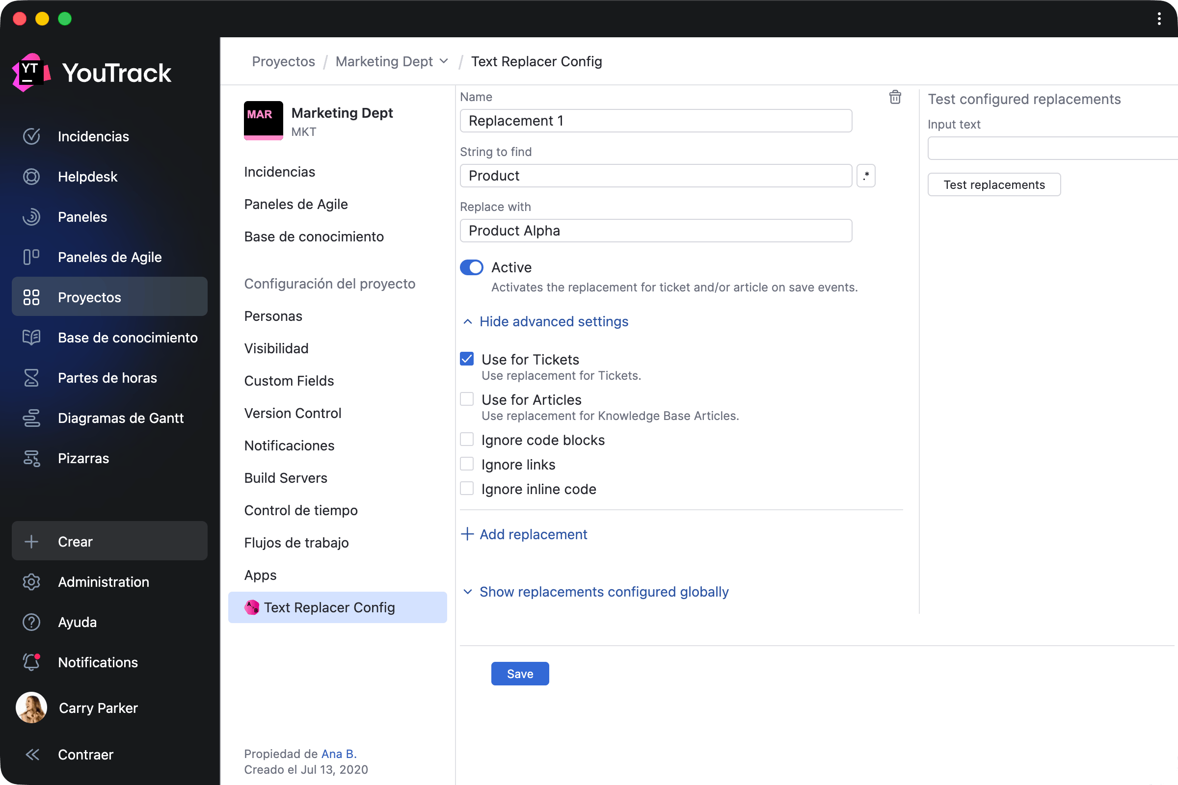Esta aplicación le permite actualizar contenido en todo su proyecto, de forma puntual o recurrente. Puede utilizarla para tareas y artículos para convertir identificadores de sistemas externos en enlaces, reemplazar texto con contenido predefinido y más.