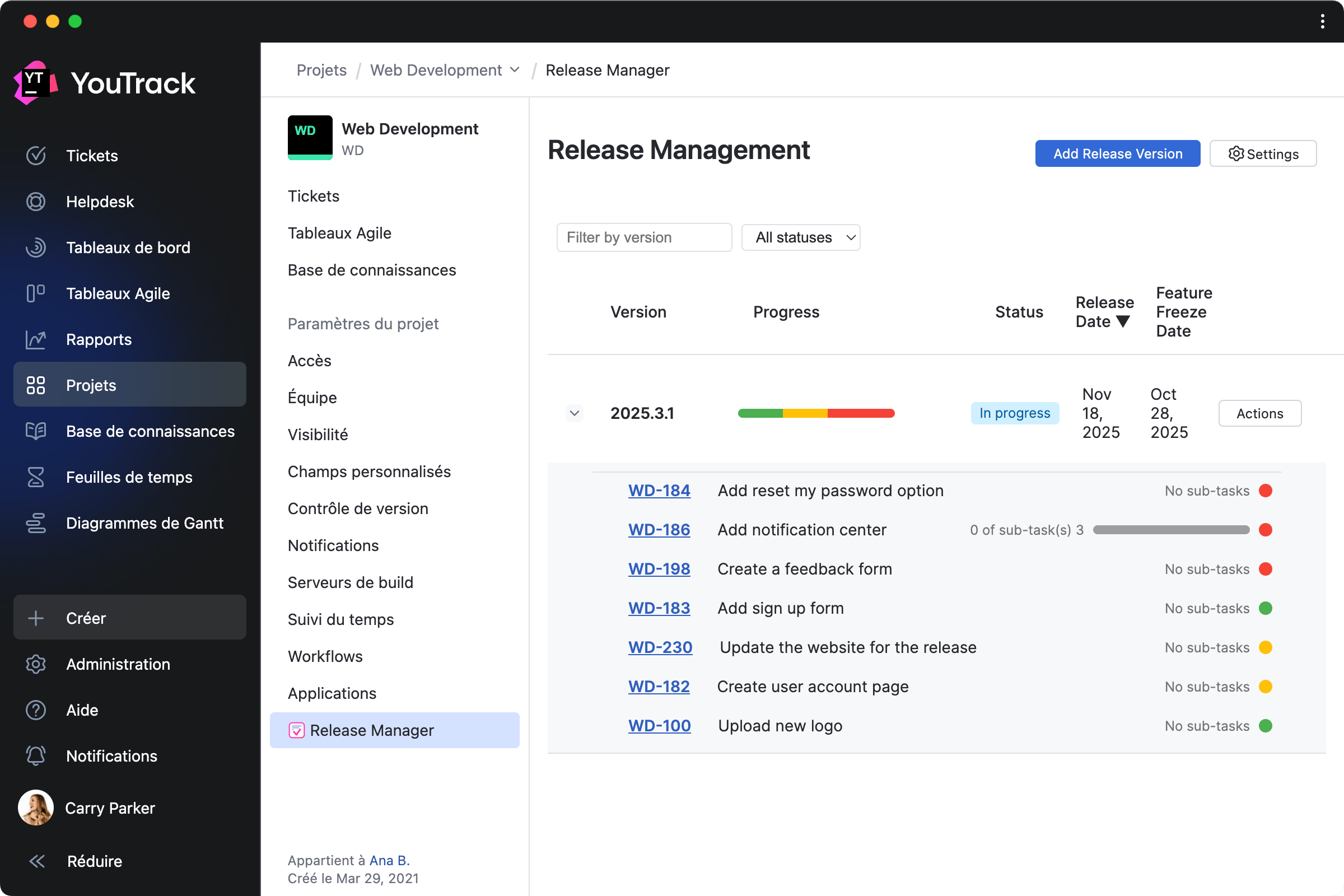 Cette application aide les équipes à planifier, suivre et communiquer plus efficacement les versions de produits. Elle ajoute des outils de gestion des versions, de suivi de la progression et de génération automatique de notes de publication sur la page de présentation du projet.
