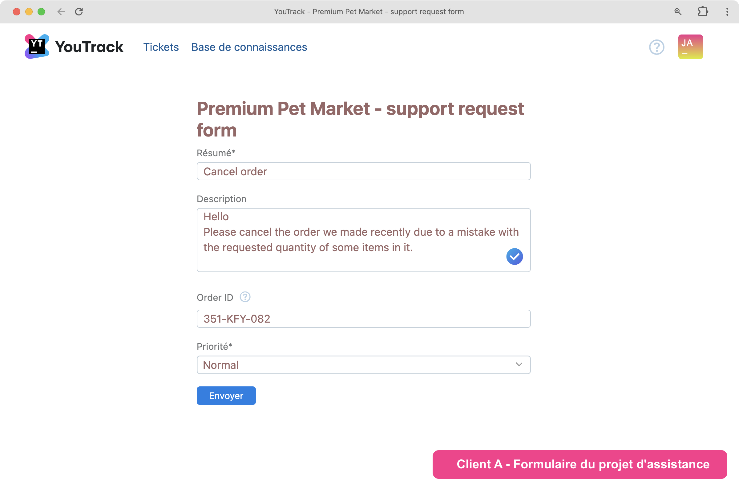 Lorsqu'un nouveau ticket est reçu, YouTrack en fait un résumé à l'aide du formulaire de soumission de ticket ou du sujet de l'e-mail. Les agents ont désormais la possibilité de modifier le résumé du ticket afin de le rendre plus clair et de faciliter sa révision ultérieure.