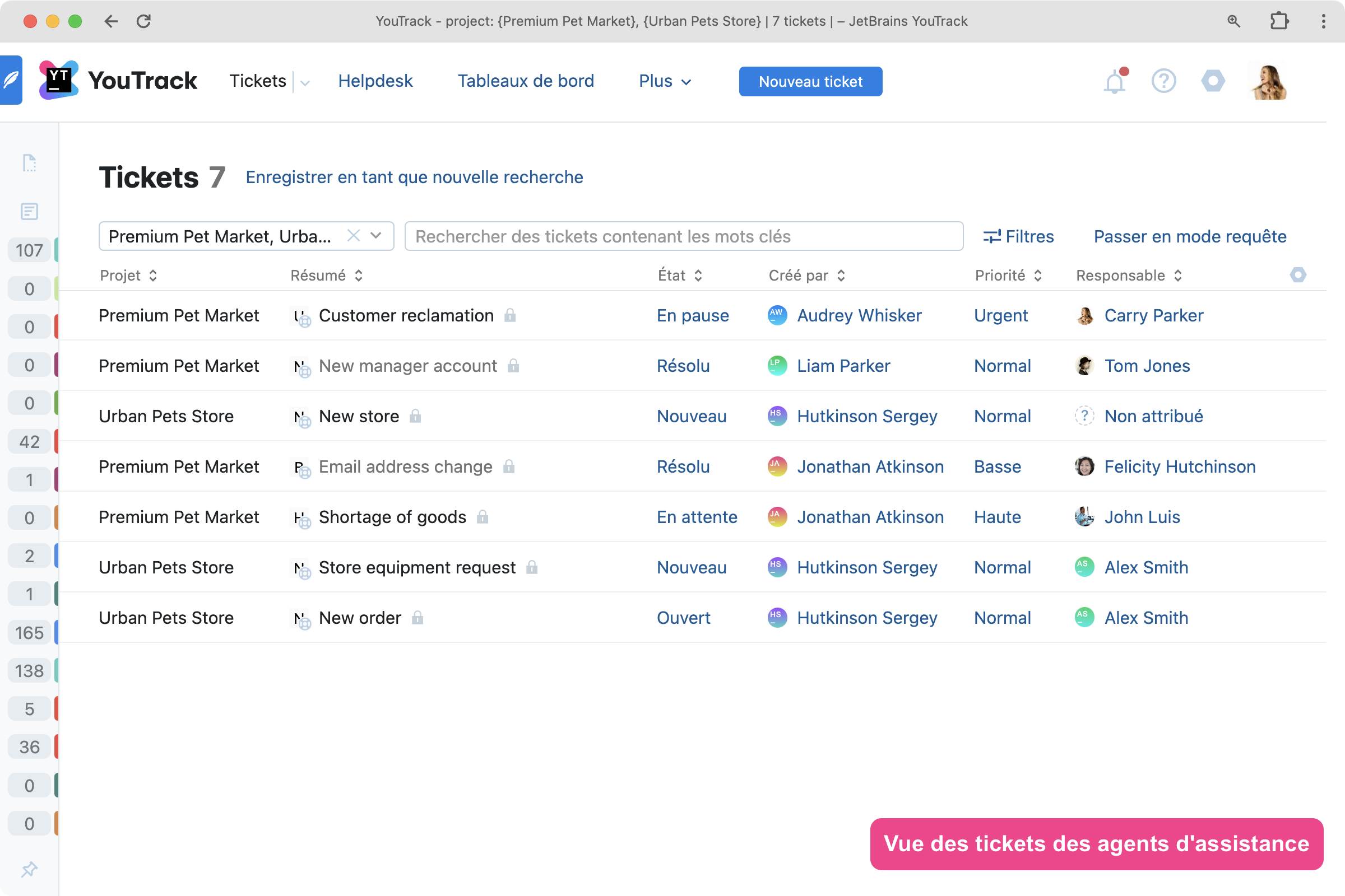 Les équipes des services d'assistance qui travaillent sur plusieurs projets helpdesk pour différents clients ou produits peuvent désormais restreindre l'accès à certains de ces projets à des groupes prédéfinis de rapporteurs et gérer leurs tickets de façon privée. Nous avons par ailleurs ajouté la possibilité pour les agents de modifier les résumés des tickets de support.