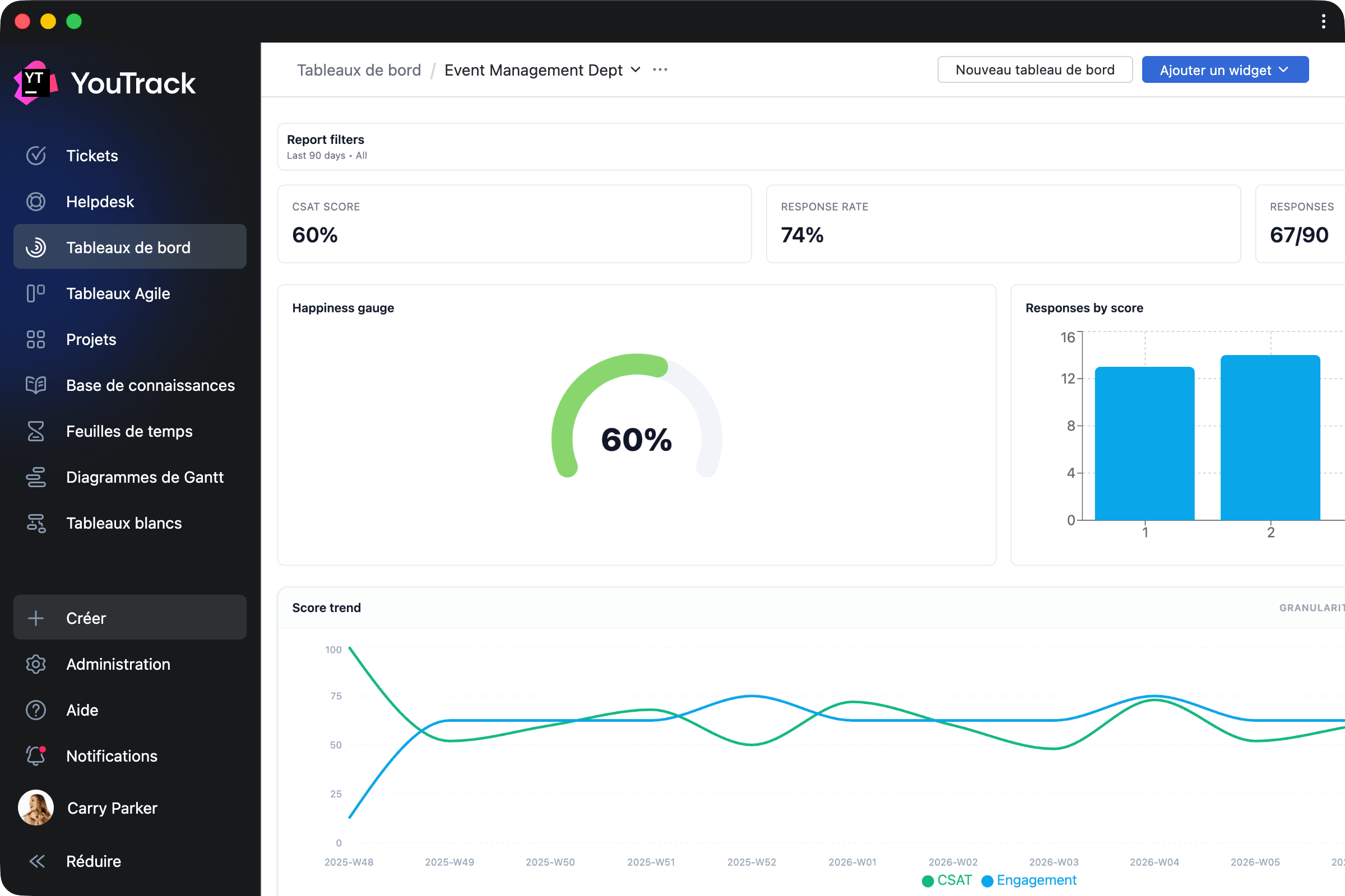 Cette application payante permet aux équipes de recueillir des avis sur l'exécution des tâches grâce à des enquêtes automatisées de satisfaction client (CSAT). Configurez votre flux d'enquête personnalisé et consultez les statistiques des réponses directement dans YouTrack.