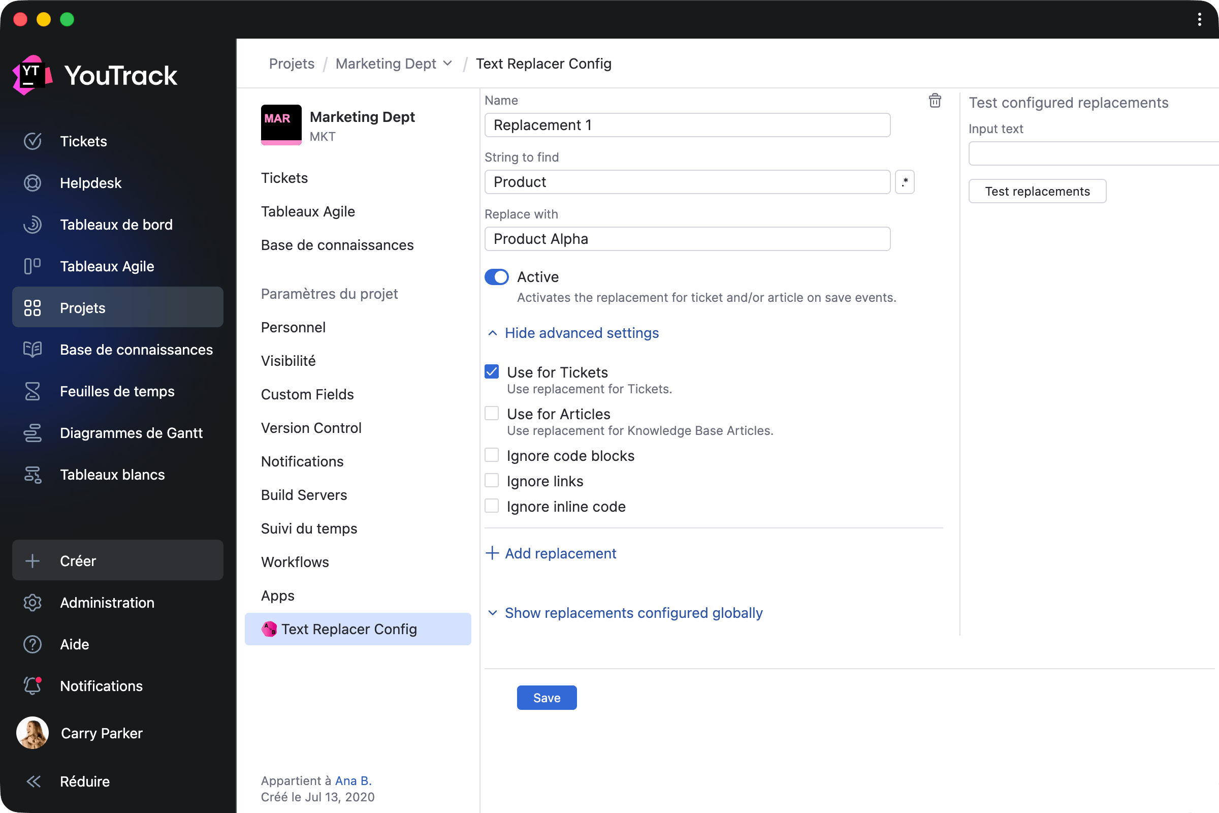 Cette application vous permet de mettre à jour du contenu dans l'ensemble de votre projet, ponctuellement ou de manière récurrente. Vous pouvez l'utiliser dans des tâches et des articles afin de transformer des identifiants de systèmes externes en liens, de remplacer du texte par du contenu prêt à l'emploi, et bien plus.