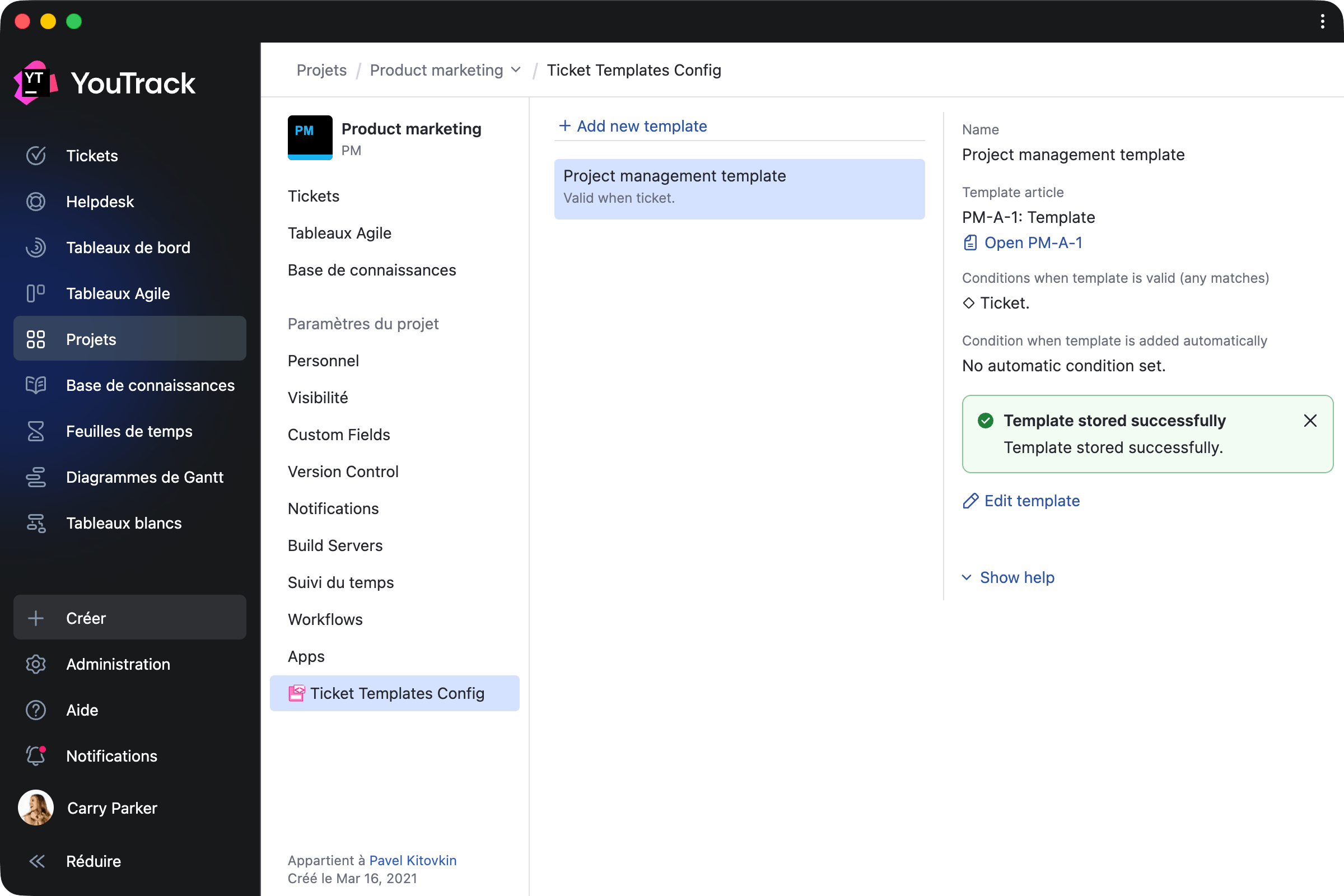 Cette application met automatiquement à jour les tâches et le contenu des articles à l'aide de vos modèles enregistrés, qui peuvent être créés en fonction des champs des tickets, des balises et de diverses autres conditions.