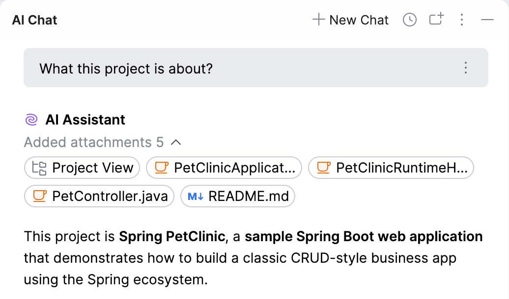 AI Assistant gathers relevant context from your project, such as selected code or the current file.