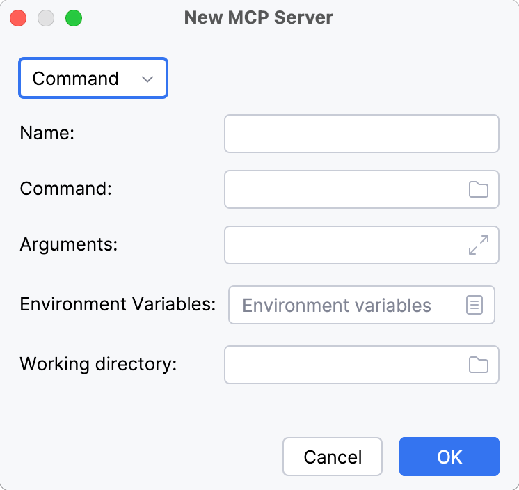 In the New MCP Server dialog, select how you want to specify the parameters of the MCP server: