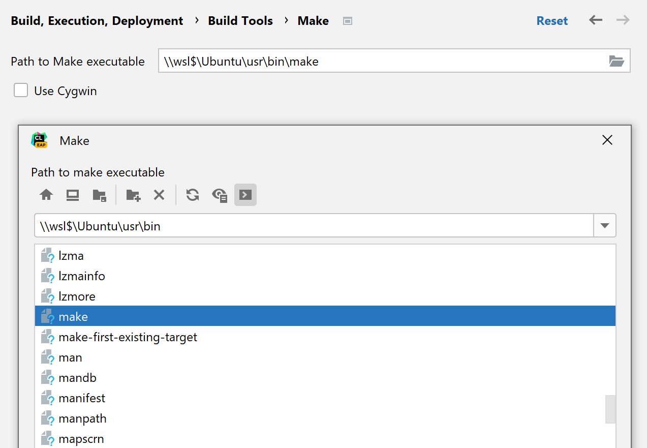 When working with WSL, make sure to sync the per-project toolchain settings and the global Make settings: