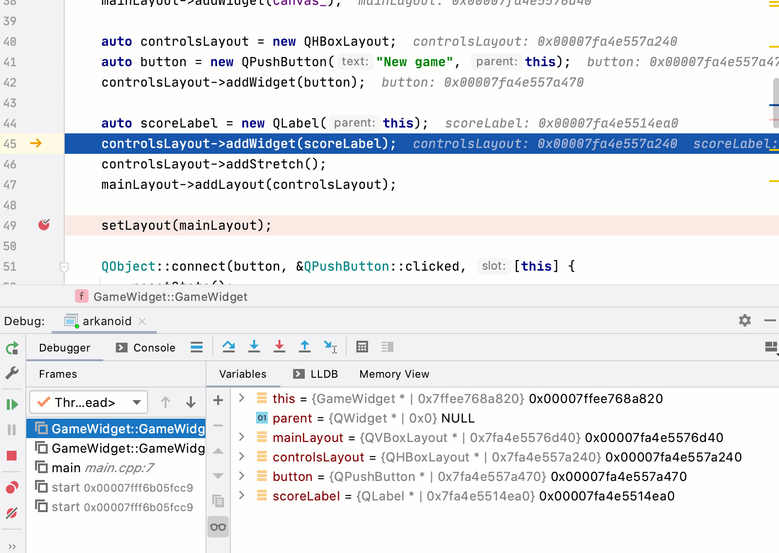 If you jump to a function that is not called in the current control flow graph, CLion will warn you that the execution might be broken (not supported for GDB currently).