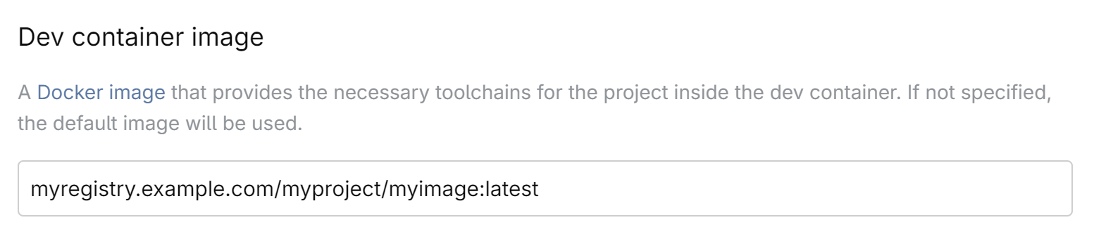 To specify the URL of your custom image, use the Advanced | Dev container image section of a dev environment template.