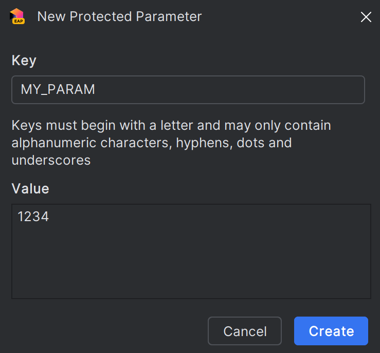 Click Create. The parameter will be saved in your personal storage in CodeCanvas.