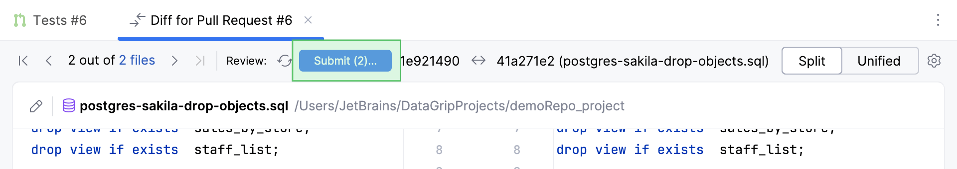 You can receive a request to review code changes from your colleague or a fellow contributor. As a pull request reviewer, you can give your feedback directly in DataGrip: