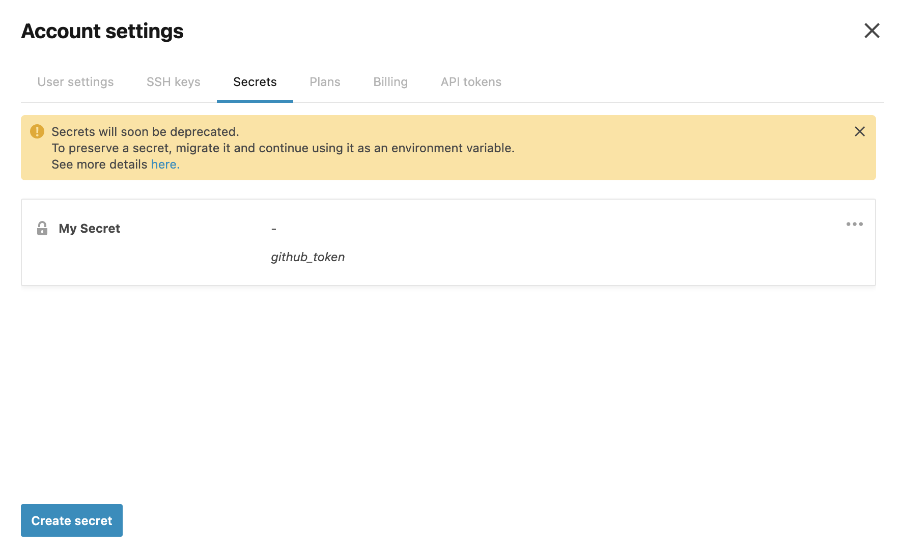 Environment variables are the new alternative to Secrets (soon deprecated). To preserve your secrets, migrate them to environment variables.