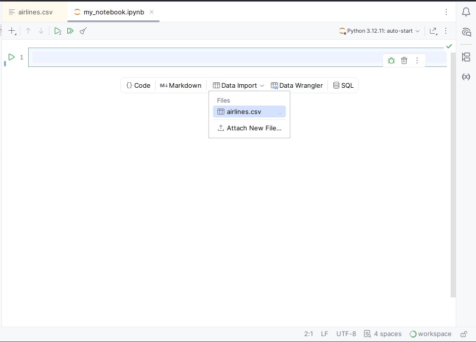 Drag the airlines.csv file to the notebook.