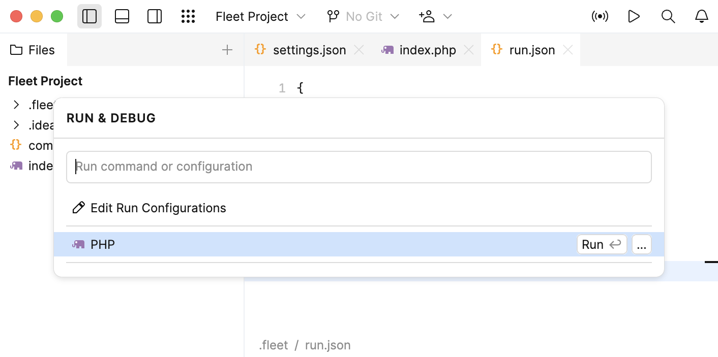 For more information about PHP run configurations in JetBrains Fleet, refer to PHP run configurations.