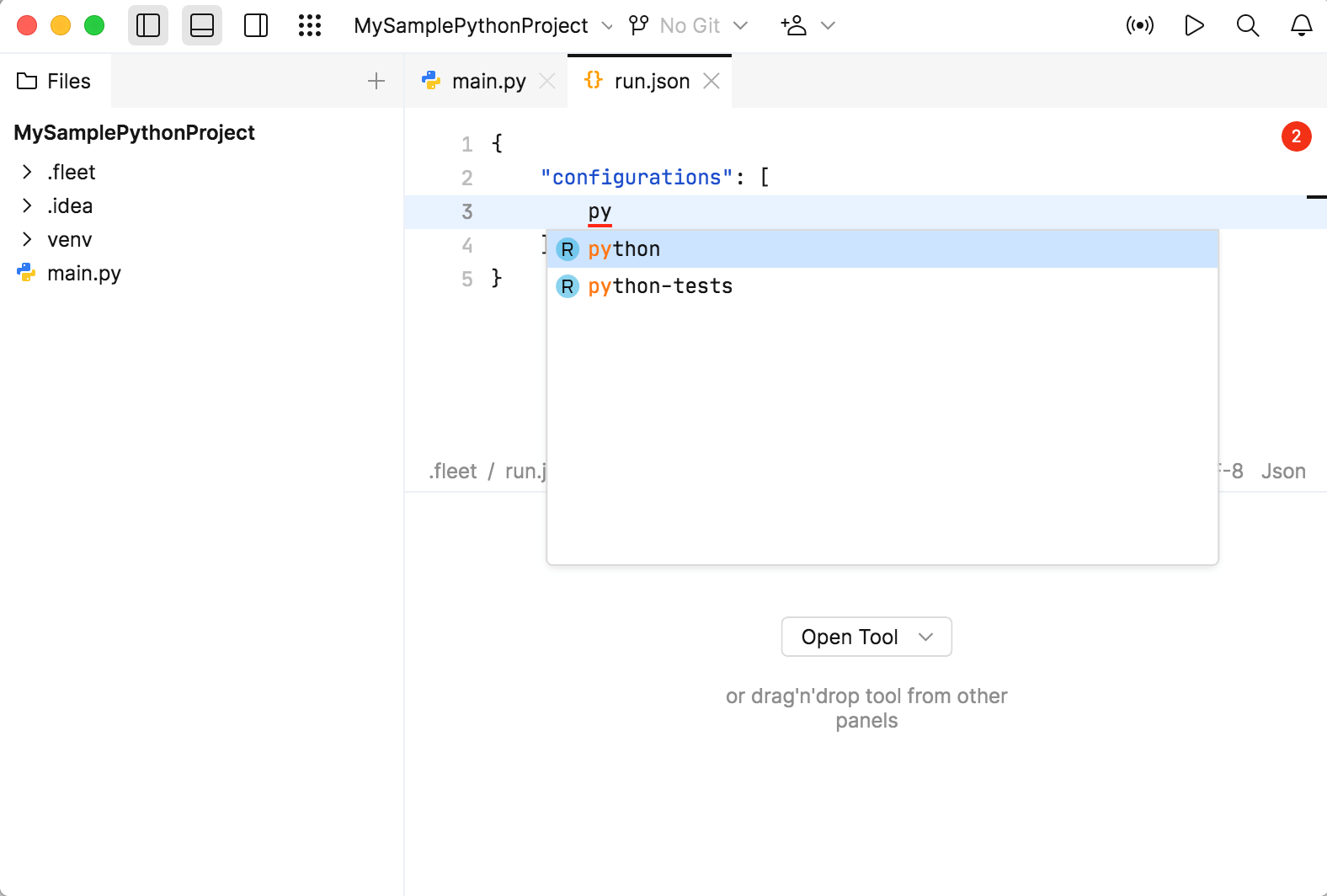 For more information about Python run configurations in JetBrains Fleet, refer to Python run configurations.