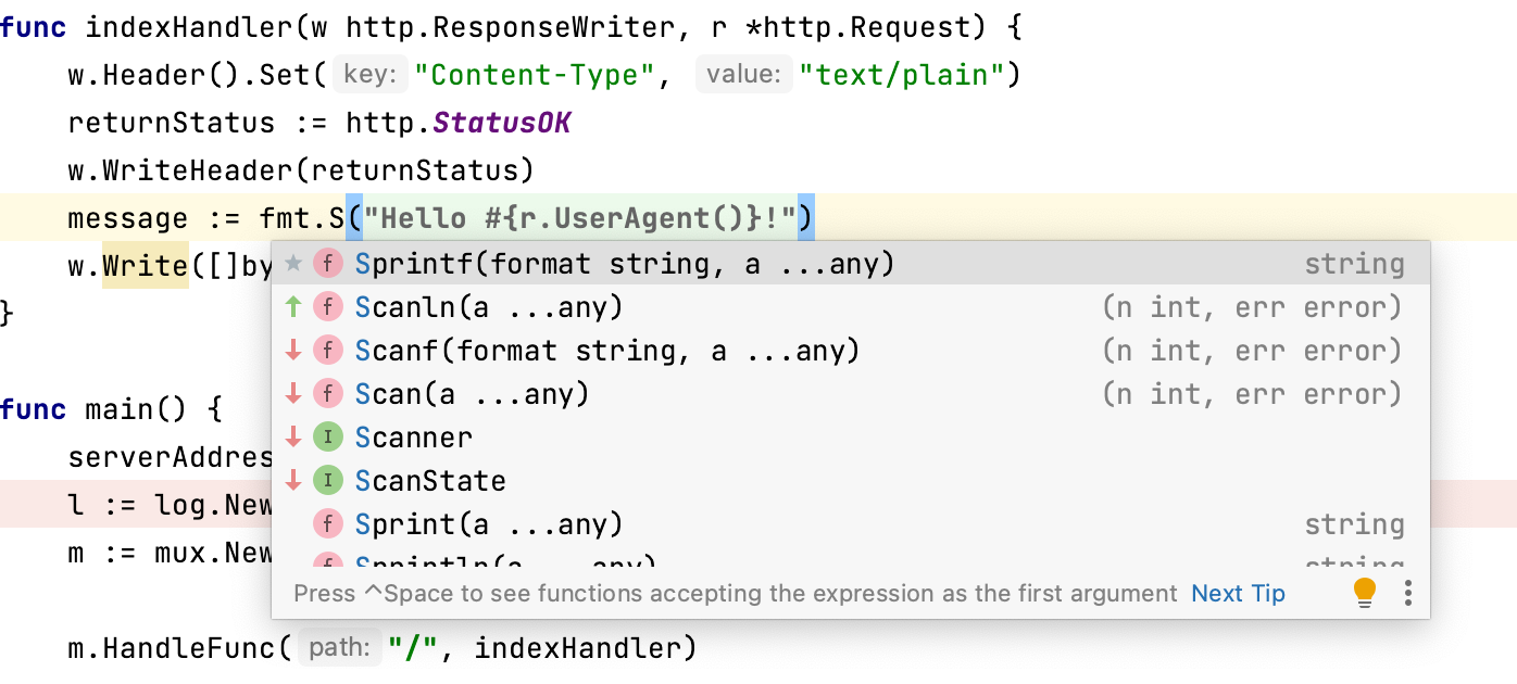 http, you can type404to autocomplete the value tohttp.StatusNotFound.