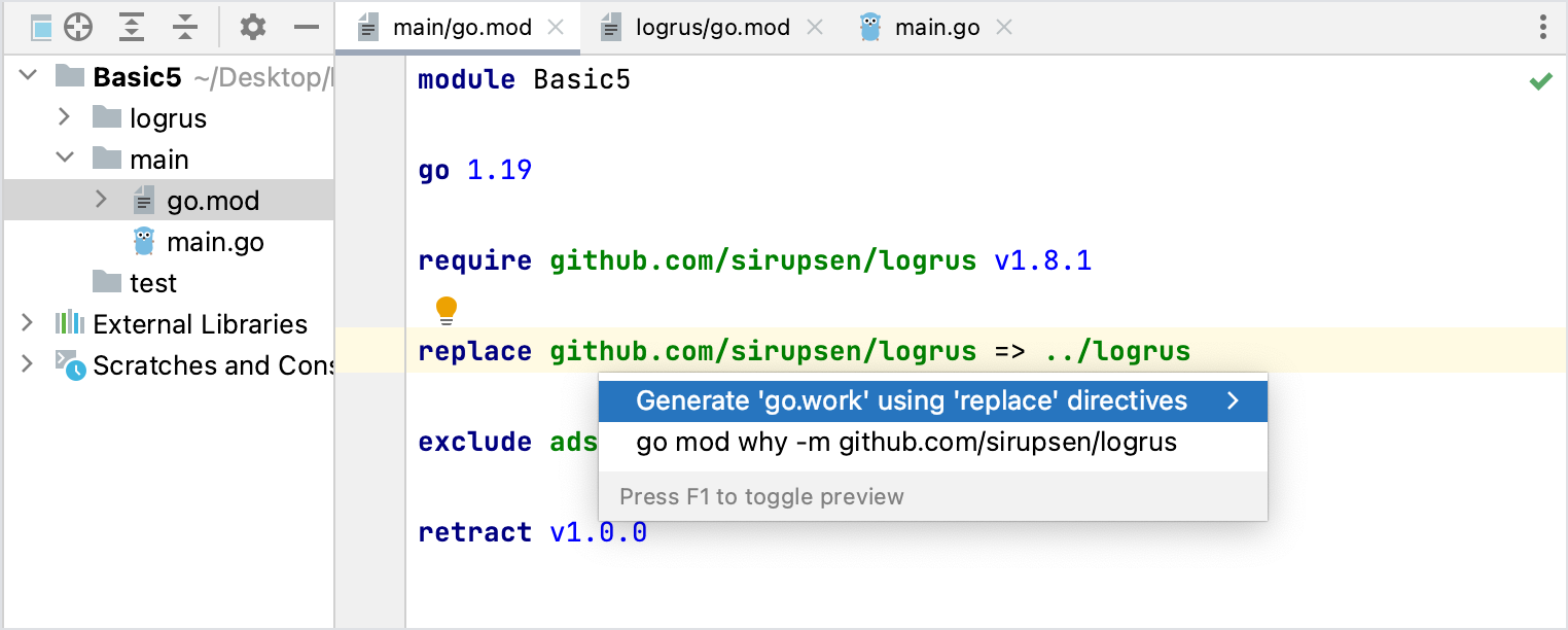 You can also generate a go.work file from an existing go.mod file if it contains replace directives.
