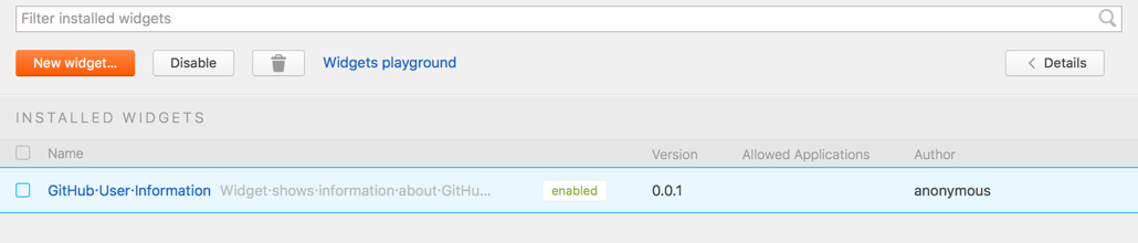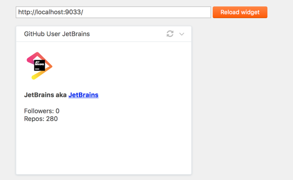 This page walks you though the steps for building a custom widget. We decided to cover a very simple case: a sample widget that displays profile information for a user in GitHub. This widget doesn't perform any complex operations, like authentication and authorization in a third-party service, nor does it have complex style elements. Still, we hope that this tutorial helps you grasp the basic concept behind a custom widget.