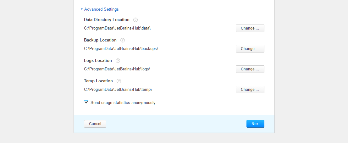 To share usage statistics with Jetbrains, keep the Send usage statistics anonymously option enabled. This feature helps JetBrains track usage statistics to make Hub better. We never share collected data with any third party.