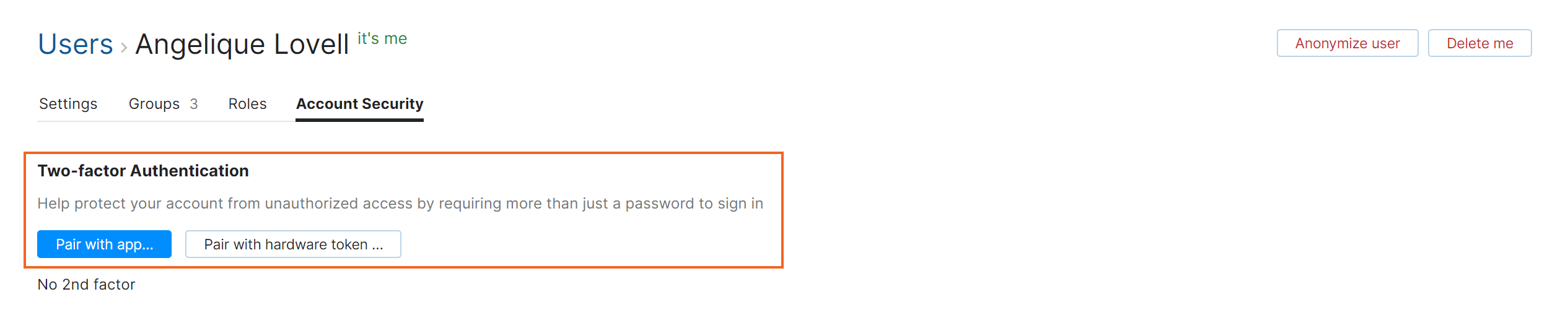 3. Locate the Two-factor authentication setting and click the Pair with app button.