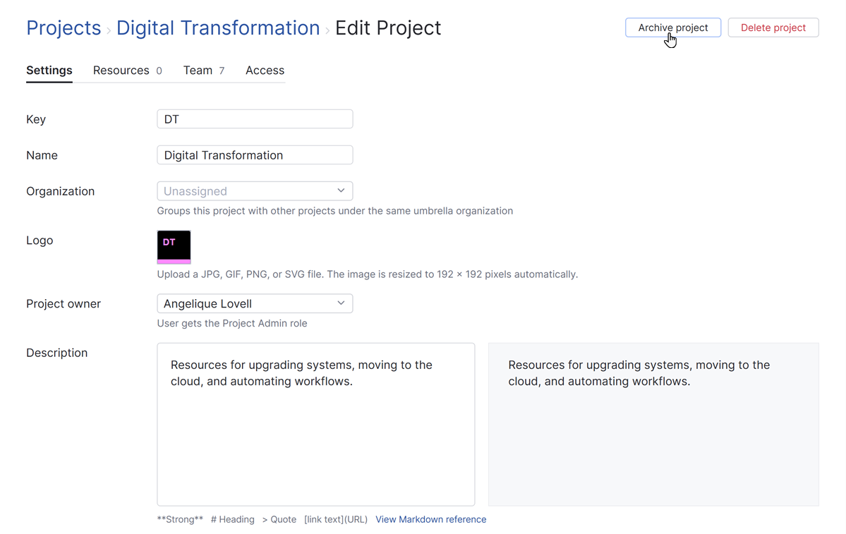Archive a Project