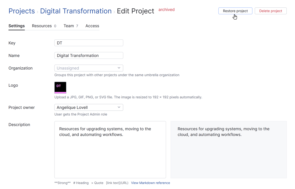 Unlike deleting a project, archiving is a reversible operation. You can easily restore an archived project when you need to.