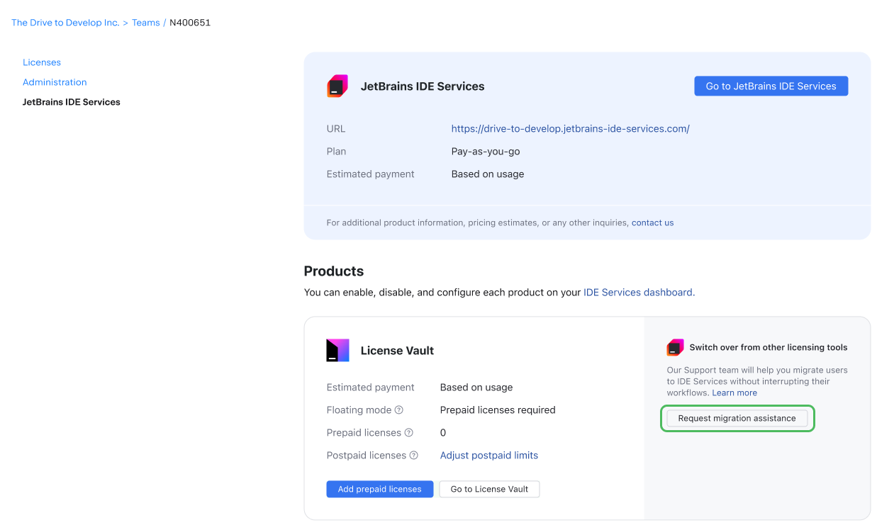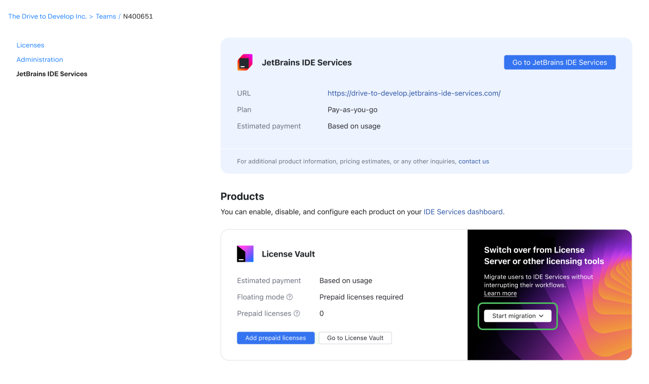 If you distribute licenses manually via JetBrains Account or use a standalone License Vault instance that's not integrated with IDE Services, you can switch to IDE Services in a few steps.