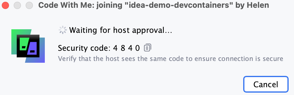 Send the link to guests. When a guest clicks the link, the IDE displays a popup suggesting either to accept or decline the guest. On this step, you should verify the codes are equal for your guest and you.