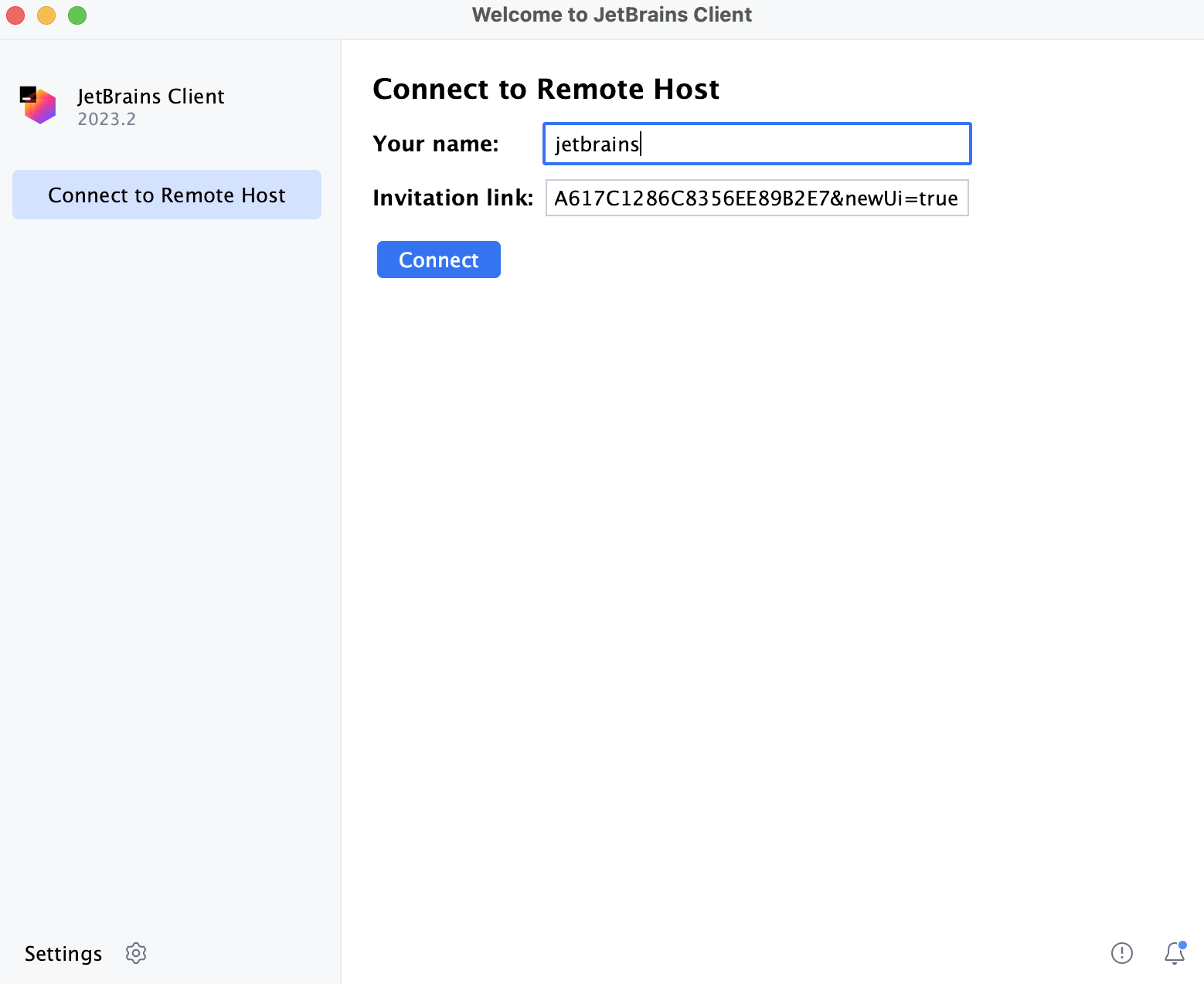 ~/Library/Caches/JetBrains/JetBrainsClient<plugin_version>%LOCALAPPDATA%\JetBrains\JetBrainsClient<plugin_version>~/.cache/JetBrains/JetBrainsClient<plugin_version>The Code With Me settings: