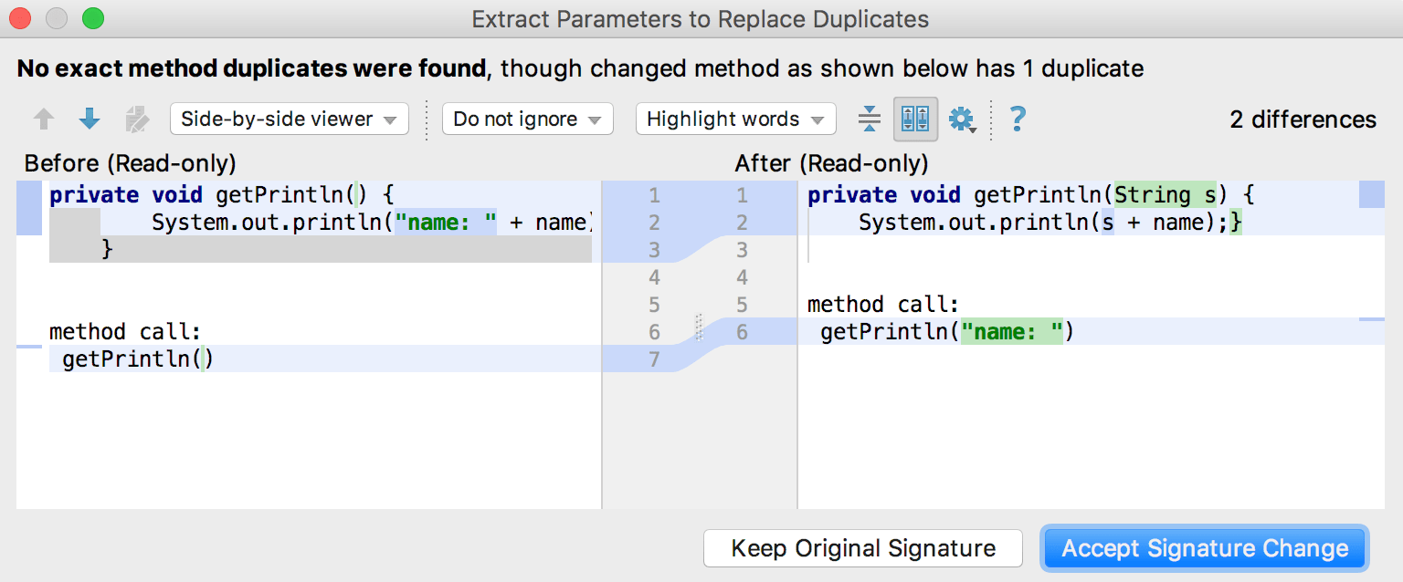 If IntelliJ IDEA detects code that is only partially duplicated, it suggests extracting a parameter to proceed with the refactoring.