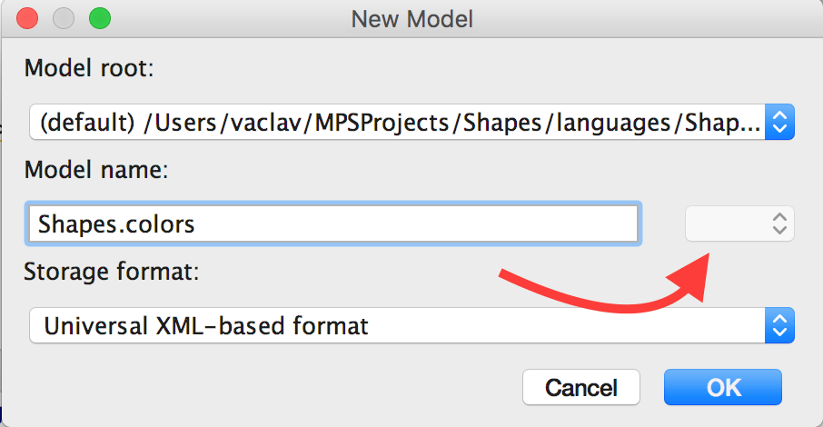 So just type Shape where MPS indicates a missing name - the red <no name> field.
