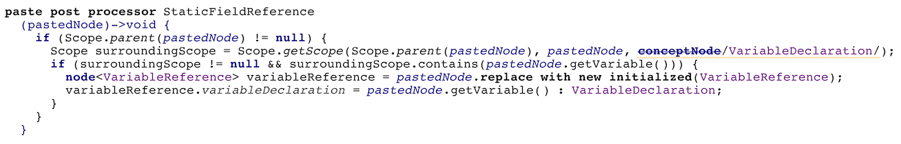 The task for the paste post processor typically is to re-resolve references so that they point to declarations valid in the new context.