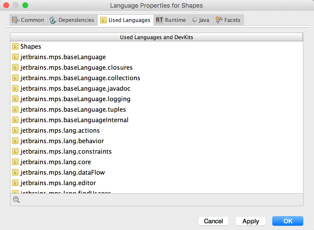Use the Alt+Enter to get the properties dialogs. Notice that the language needs to be marked as Extends.