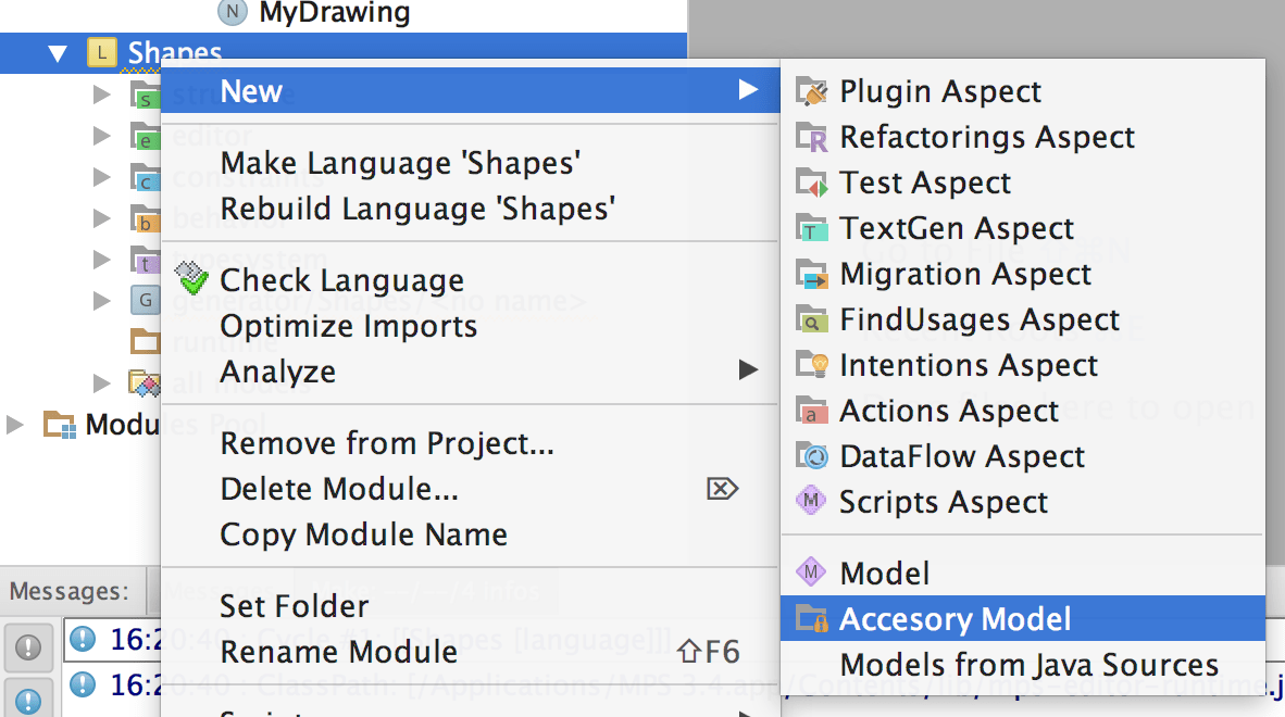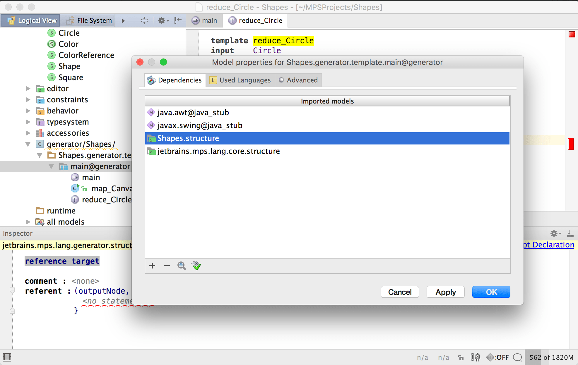 Following the same steps, you need to right-click the Structure aspect of the language and add a new concept. Name it Circle.