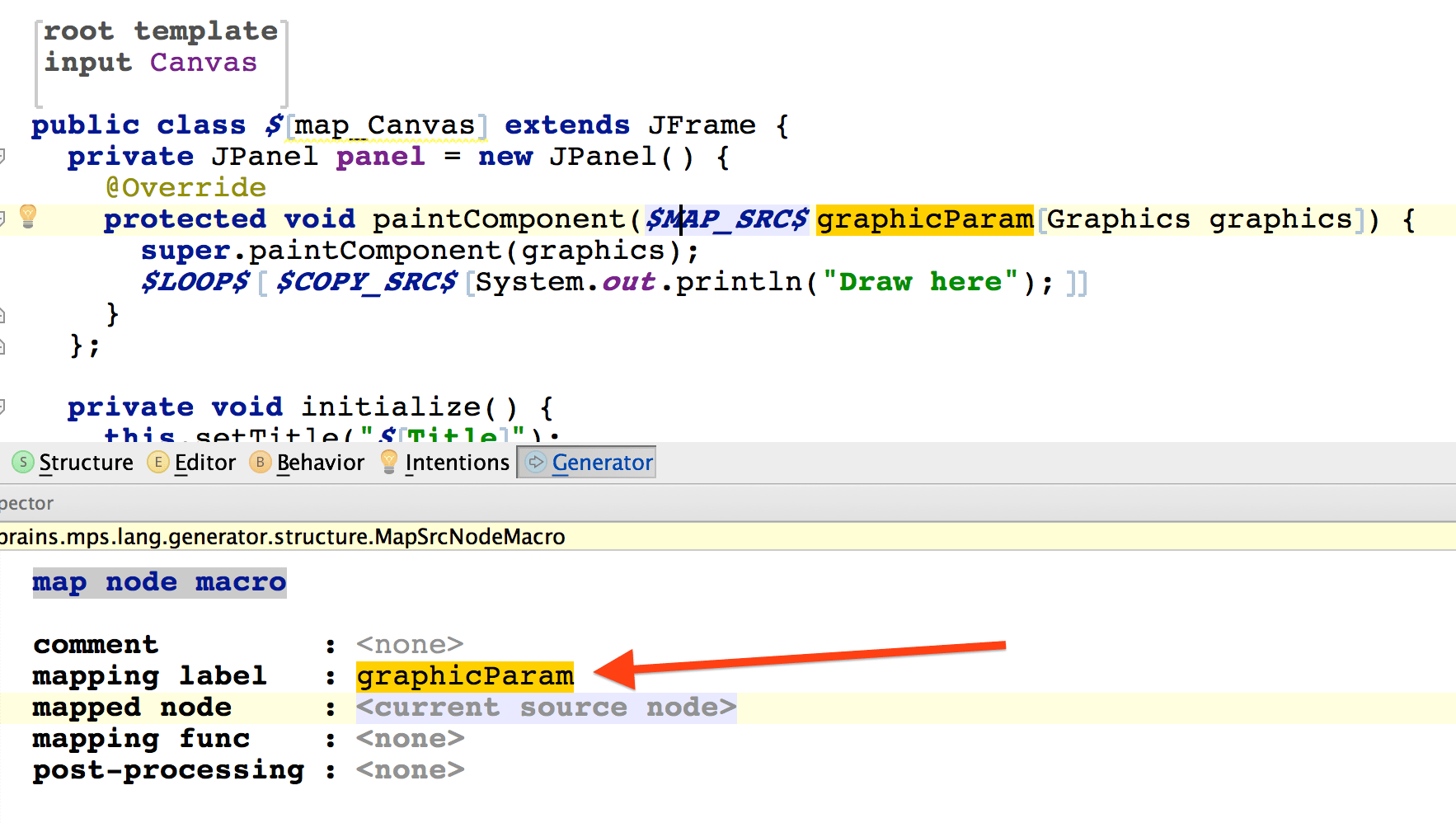 Then use Control+ArrowUp to select the inner BlockStatement, hit Alt+Enter (light-bulb) and pick "Create Template Fragment" from the intentions menu. This will mark the selected fragment of the code as the actual template, which will eventually be placed into map_Canvas