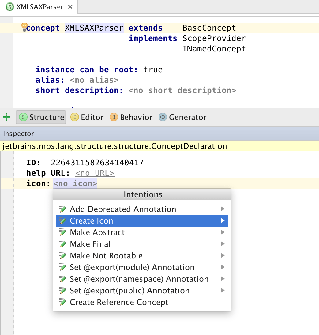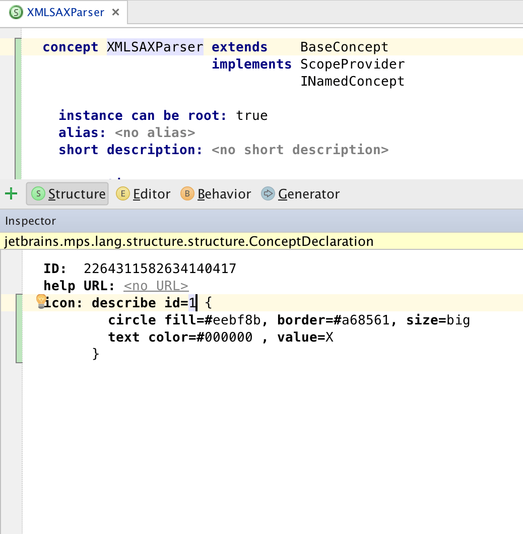 The icon description language helps describing and instantiating icons for various MPS elements: concepts, actions etc.