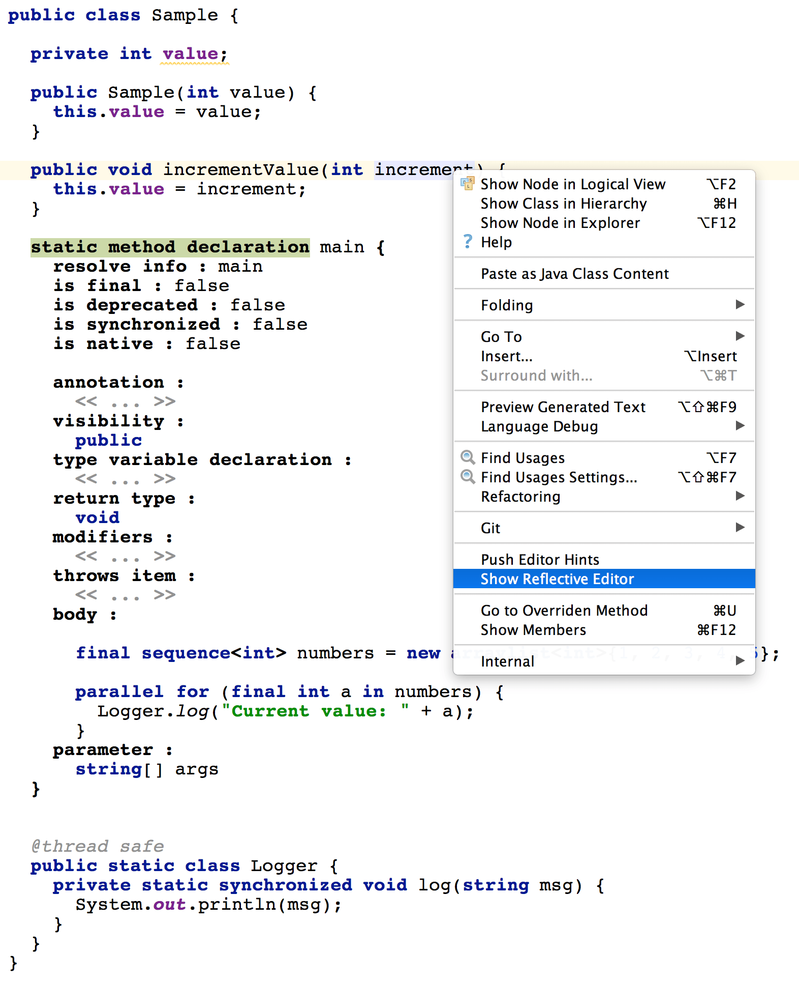 Once the structure for your language is defined, you will probably go and create the means to allow developers to conveniently build ASTs with it. Manipulating the ASTs directly is not very intuitive nor productive. To hide the AST and offer the user comfortable and intuitive interaction is the role for language editors.