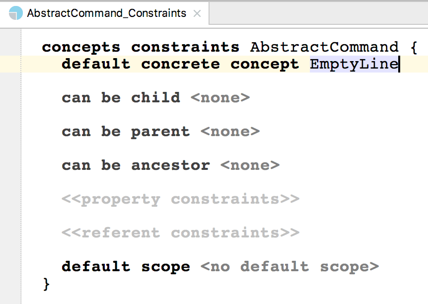 For example, if a child collection is supposed to hold AbstractCommands and the user hits enter to insert a new child into the collection, a node of the EmptyLine concept is created and inserted.